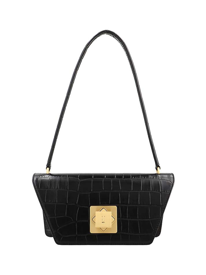 DETAILS: This classic handbag showcases a rich crocodile-embossed texture with gold-tone accents. Its structured shape...